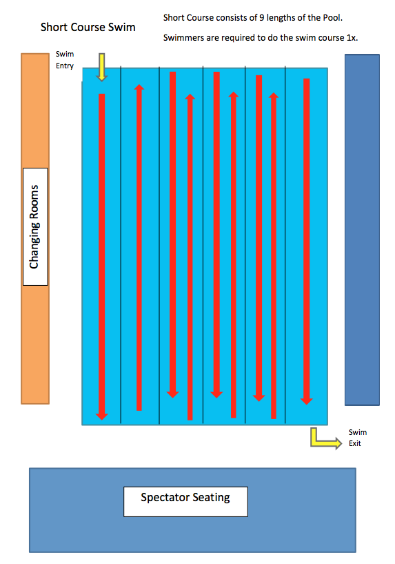 Short Course – For the short course you will swim nine (9) lengths of the pool.